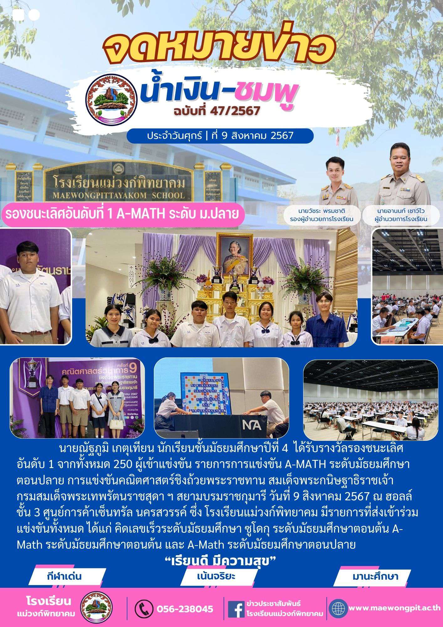 รองชนะเลิศอันดับที่ 1 A-MATH ระดับ ม.ปลาย