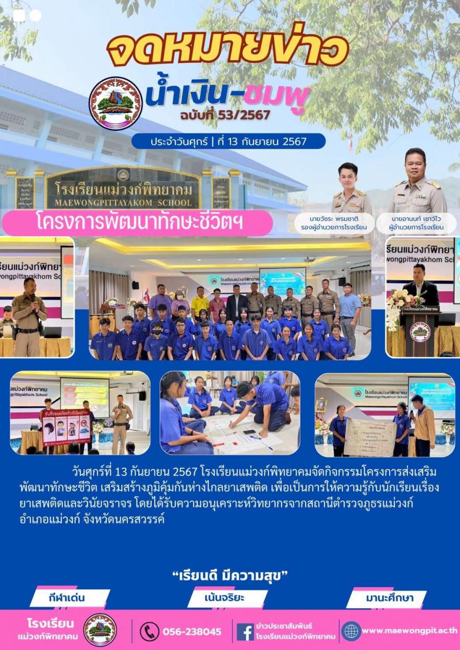 โครงการพัฒนาทักษะชีวิต เสริมสร้างภูมิคุ้มกันห่างไกลยาเสพติด