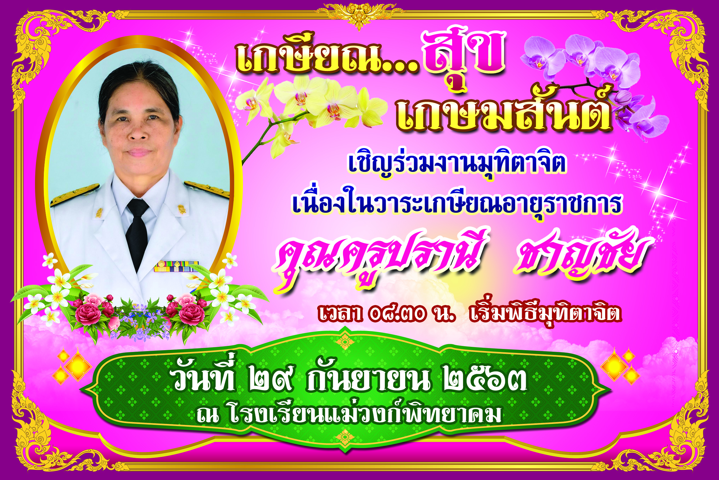 ขอเชิญร่วมพิธีมุทิตาจิต คุณครูปรานี ชาญชัย