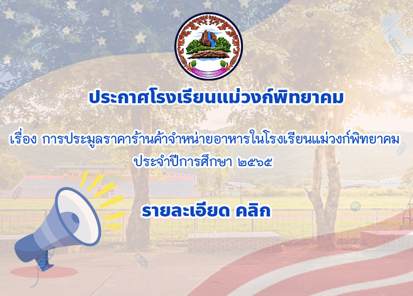 การประมูลราคาร้านค้าจำหน่ายอาหารในโรงเรียนแม่วงก์พิทยาคม ประจำปีการศึกษา ๒๕๖๕