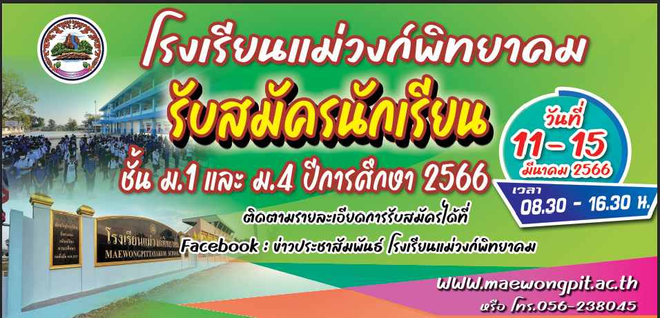 รับสมัครนักเรียนใหม่ 2566 11-15 มีนาคม 2566