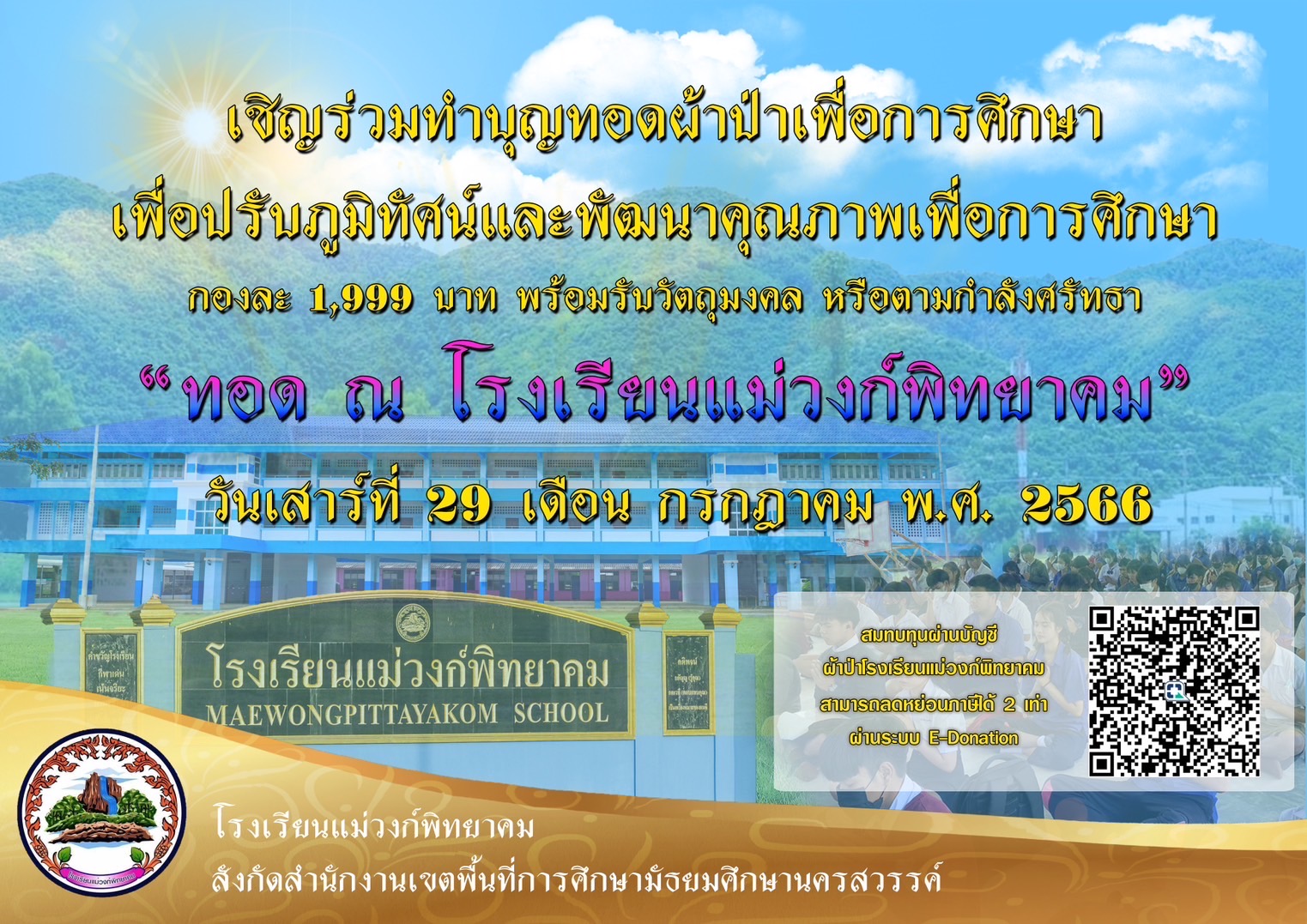 ขอเชิญผู้ปกครอง ศิษย์เก่า และประชาชนทั่วไป ร่วมบุญทอดผ้าป่าเพื่อการศึกษา กองละ 1,999 หรือตามกำลังศรัทธา #สามารถลดหย่อนภาษีได้2เท่า