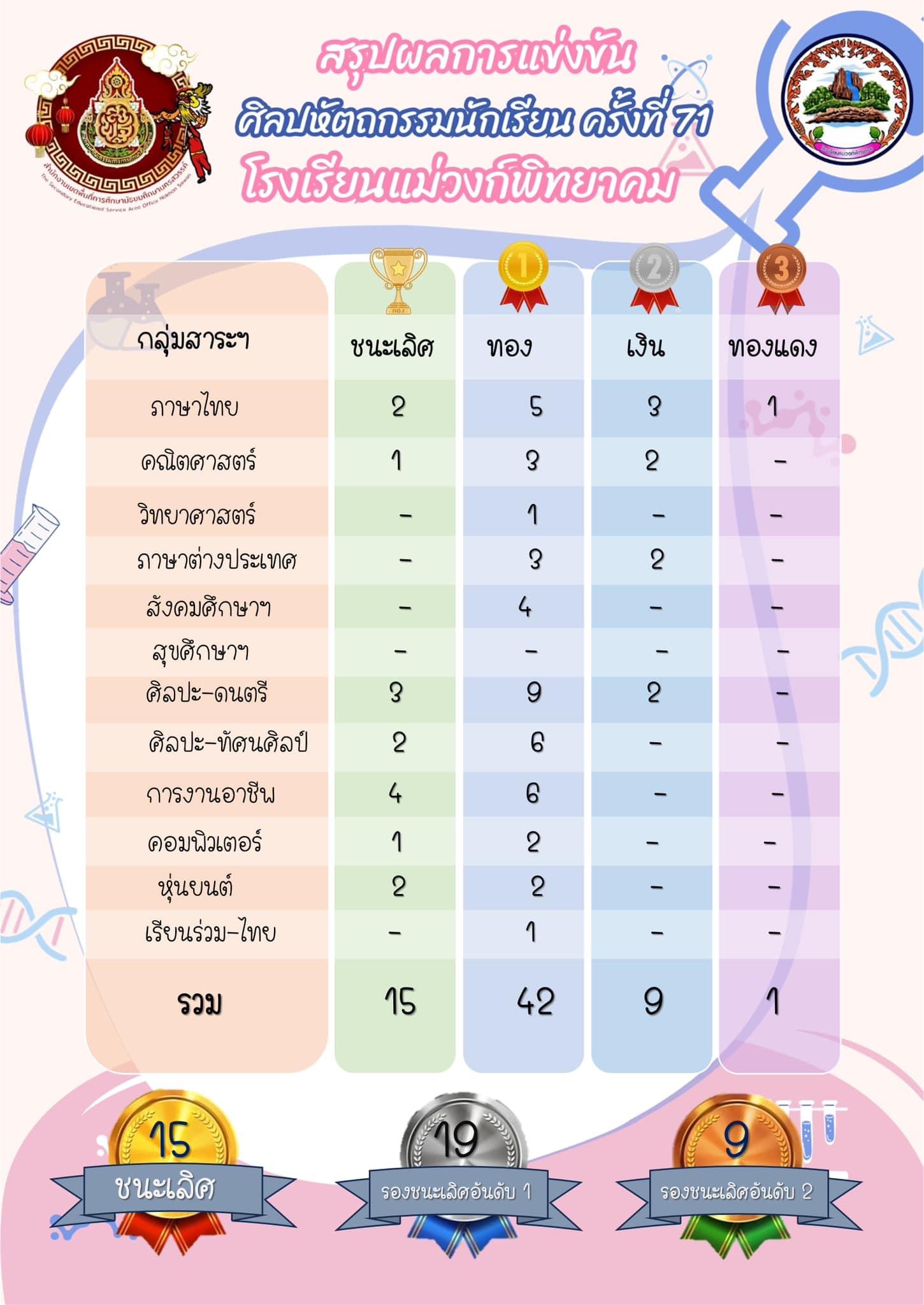 สรุปผลเหรียญรางวัลศิลปหัตถกรรมครั้งที่ 71