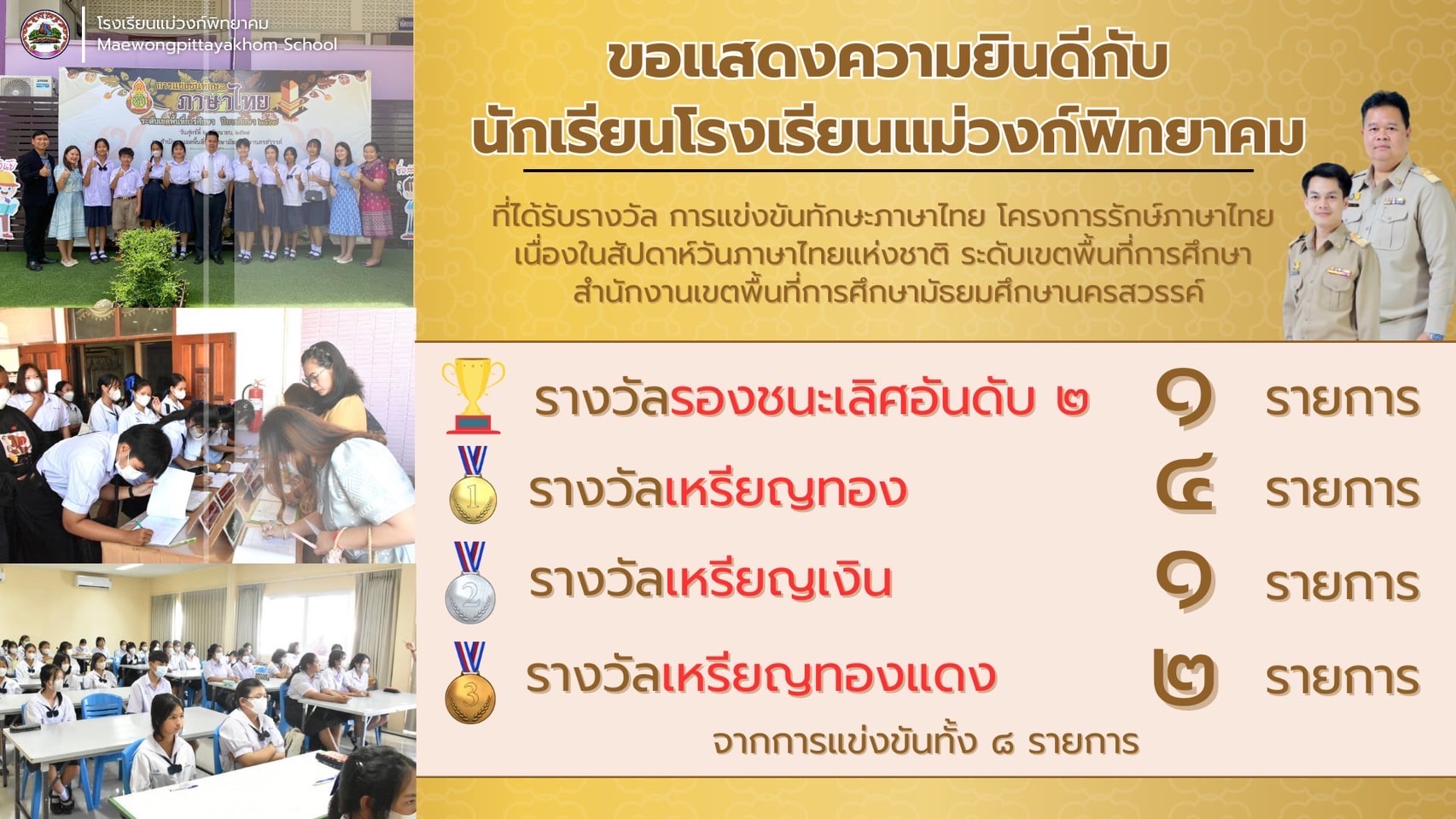 รายงานผลการแข่งขันทักษะภาษาไทย โครงการรักษ์ภาษาไทย สพม.นครสวรรค์