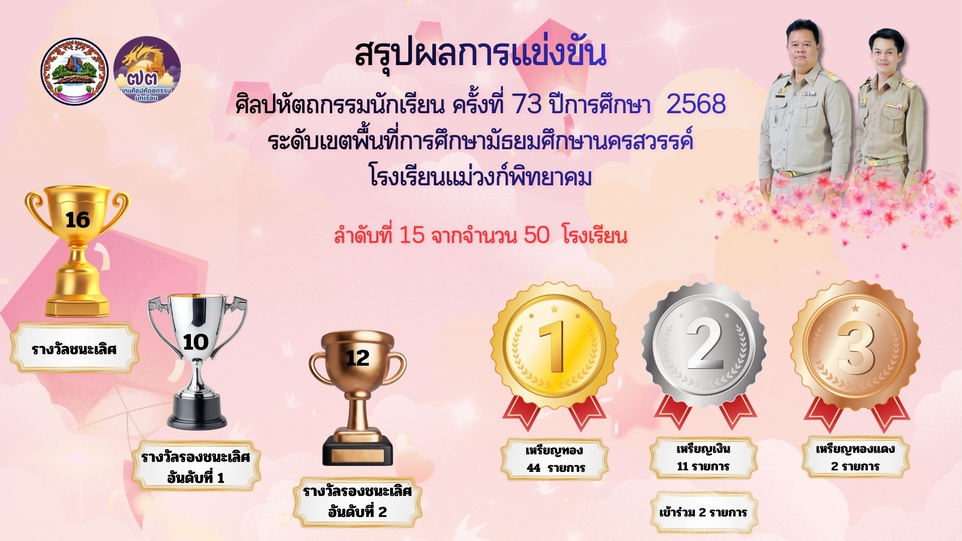 สรุปเหรียญรางวัลงานศิลปหัตถกรรมนักเรียนระดับเขตพื้นที่การศึกษา